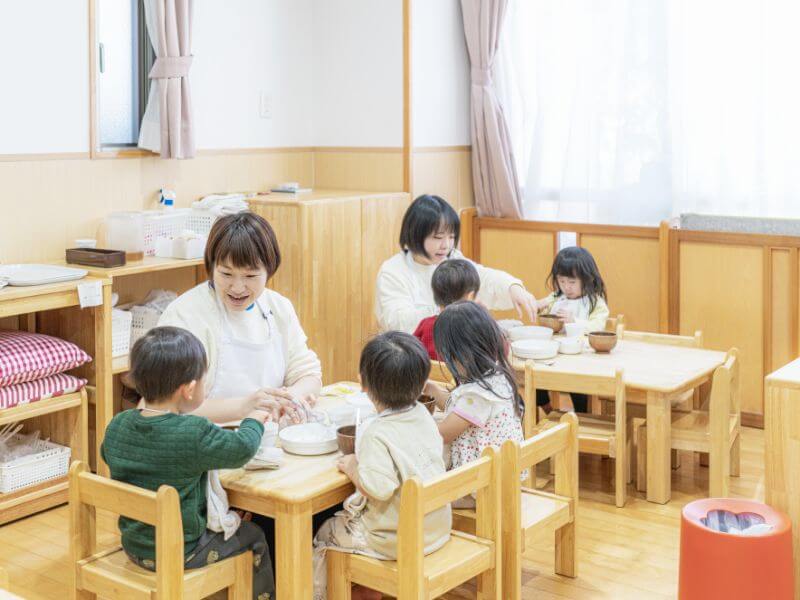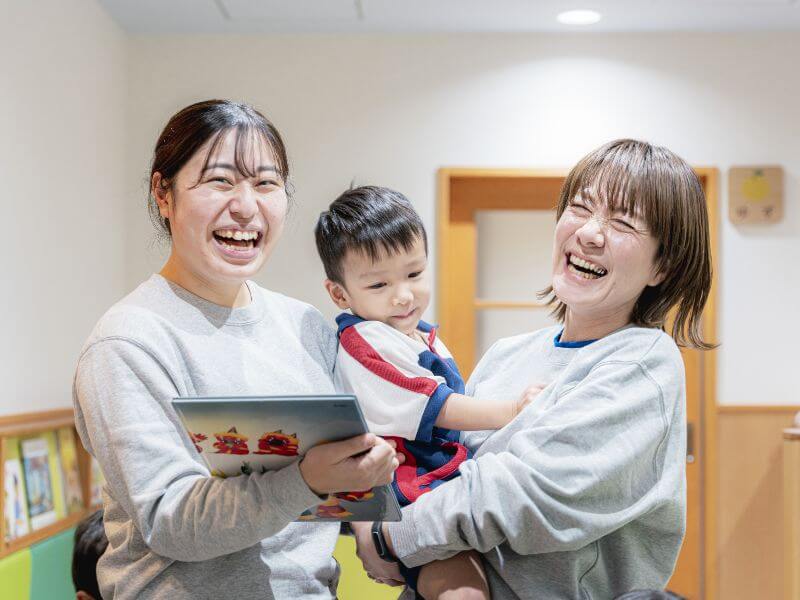 時間や気持ちにゆとりを持って子どもと関わることができます。保育の準備や片付け、事務的なことの負担が軽減され、迷ったときにすぐに相談できる安心感があります。