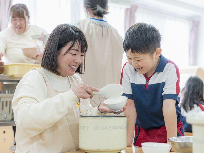 運動会や生活発表会だけではなく、流しそうめんや焼き芋パーティーなど、季節に合わせた子どもと一緒に楽しめる行事が盛りだくさんです。たこ焼きやかき氷など食に関する行事は子どもたちに大人気です。